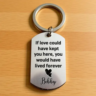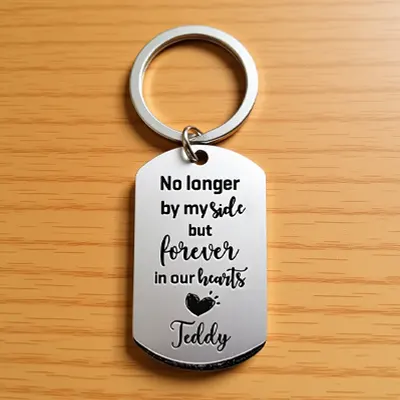 We'll print this name, date, or phrase on the keychain beneath the portrait. Please enter exactly as you'd like it to appear.