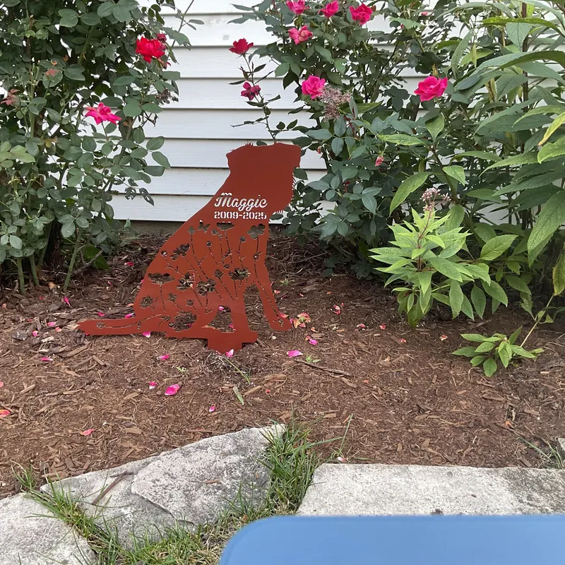 6. Didn’t expect to get emotional, but seeing our dog’s name made me tear up. The metal feels solid and the edges are smooth. Felt right to order this as the season changed — very peaceful.
